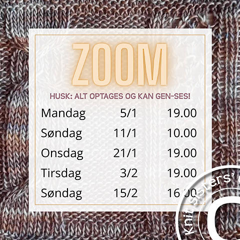 Vi mødes til undervisning på fem fastsatte datoer – og mellem møderne strikker du videre i dit eget tempo. Du får adgang til optagelser, instruktionsvideoer og et aktivt fællesskab, hvor vi hjælper og inspirerer hinanden undervejs. Facebook-gruppen er åben i et helt år efter kursusstart – så du har god tid til at strikke færdigt, stille spørgsmål og gense materialet.