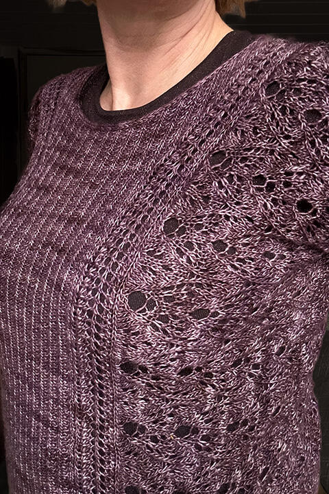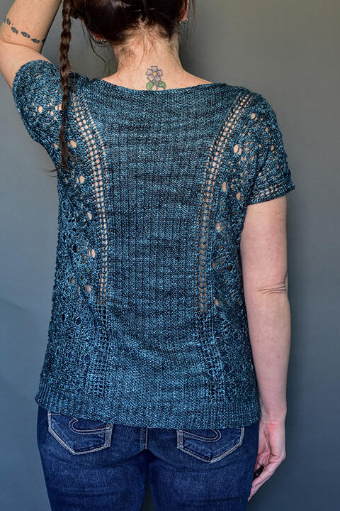 Denne top-down tee forener dekorativ rib og delikat blondestrik i et feminint og flatterende snit. Vi strikker i moduler: Først for- og bagstykke i rib med smuk halsform, derefter samles kroppen med et elegant blondemønster og afsluttes med iøjnefaldende blondekanter ved ærmerne. St. Jones Without er designet af Jennifer Beale, som du måske fra Instragram kender som @knitjbeale og fra kursus-blusen i januar: Stephenville Crossing.
